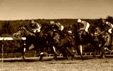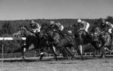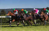 Horseracing in Czechia, Europe. Traditional sport. Jockeys on horses.