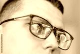 A doctor reviews an MRI scan of the patient's brain. The glasses reflect the results. The concept of modern technology and accurate diagnosis.