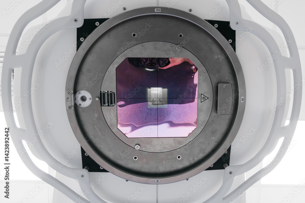 Close-up of a medical linear accelerator in therapeutic oncology. Concept of modern medical technologies.