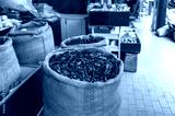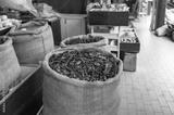 Dry chilli peppers on the market