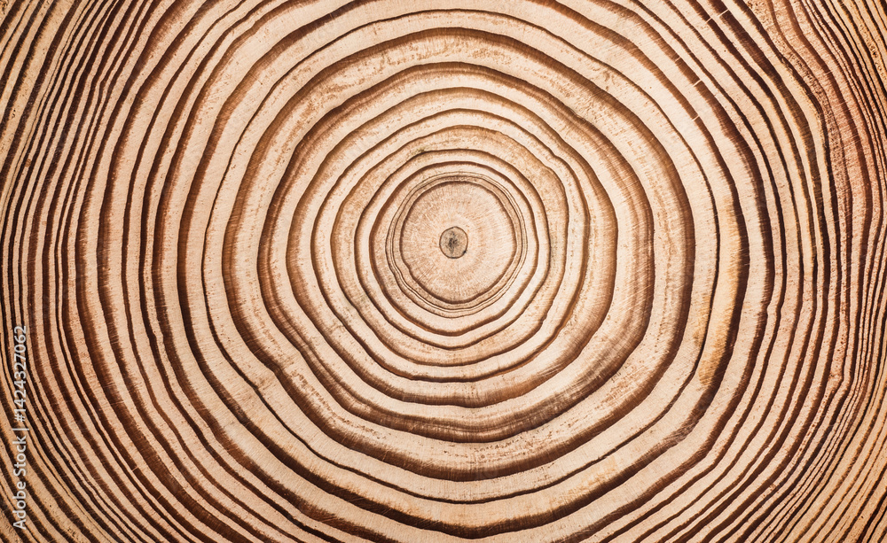 Wood larch texture of cut tree trunk, close-up. Stump wood.