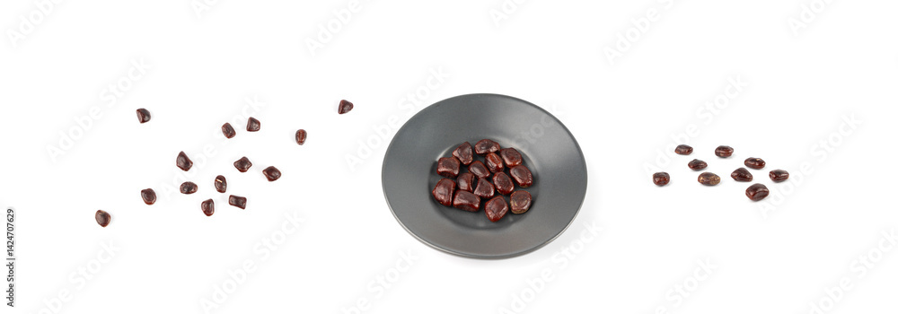Dried tamarind seeds isolated, Tamarindus indica beans on a white background, medicine ingredient