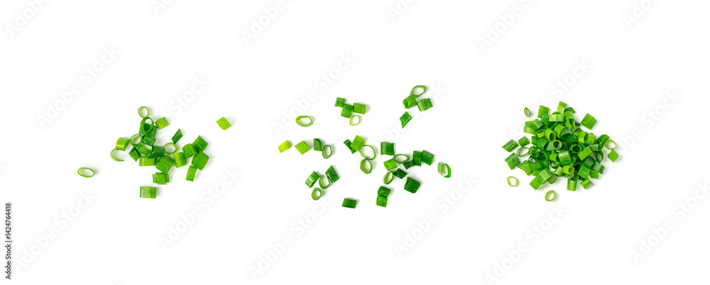 Green Onion Cuts Isolated, Scattered Fresh Chive Pile, Chopped Green Leek, Scallion Greens Pieces Chopped