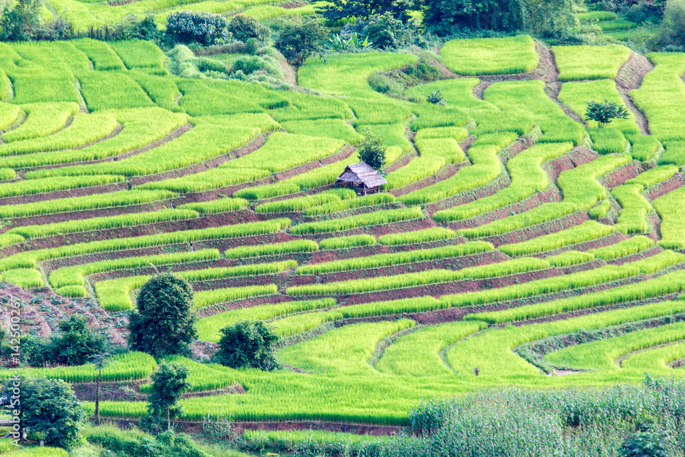Green Terraced Rice Field in Pa Pong Pieng , Mae Chaem, Chiang Mai, Thailand