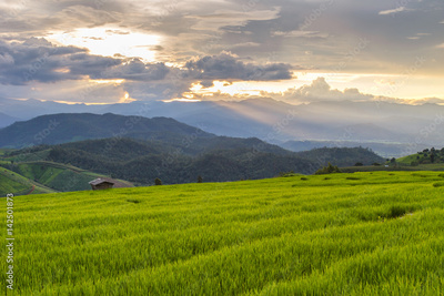 Green Terraced Rice Field in Pa Pong Pieng , Mae Chaem, Chiang Mai, Thailand