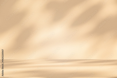 Wall interior background, studio and backdrops show products. with leaf shadow from window color beige and white. background for text insertion and presentation of product
