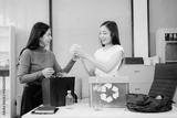 Eco friendly teamwork with this office recycling scene. Perfect for showcasing sustainability, collaboration,