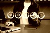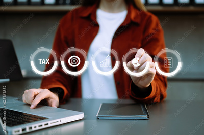 Busines using a computer to complete Individual income tax return form online for tax payment.Tax and Vat concept.