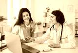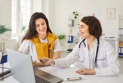 Doctor physician or nurse conducting a conversation with a patient during a consultation in a clinic office. Medical advice, healthcare support, and reassurance to address personal health concerns.
