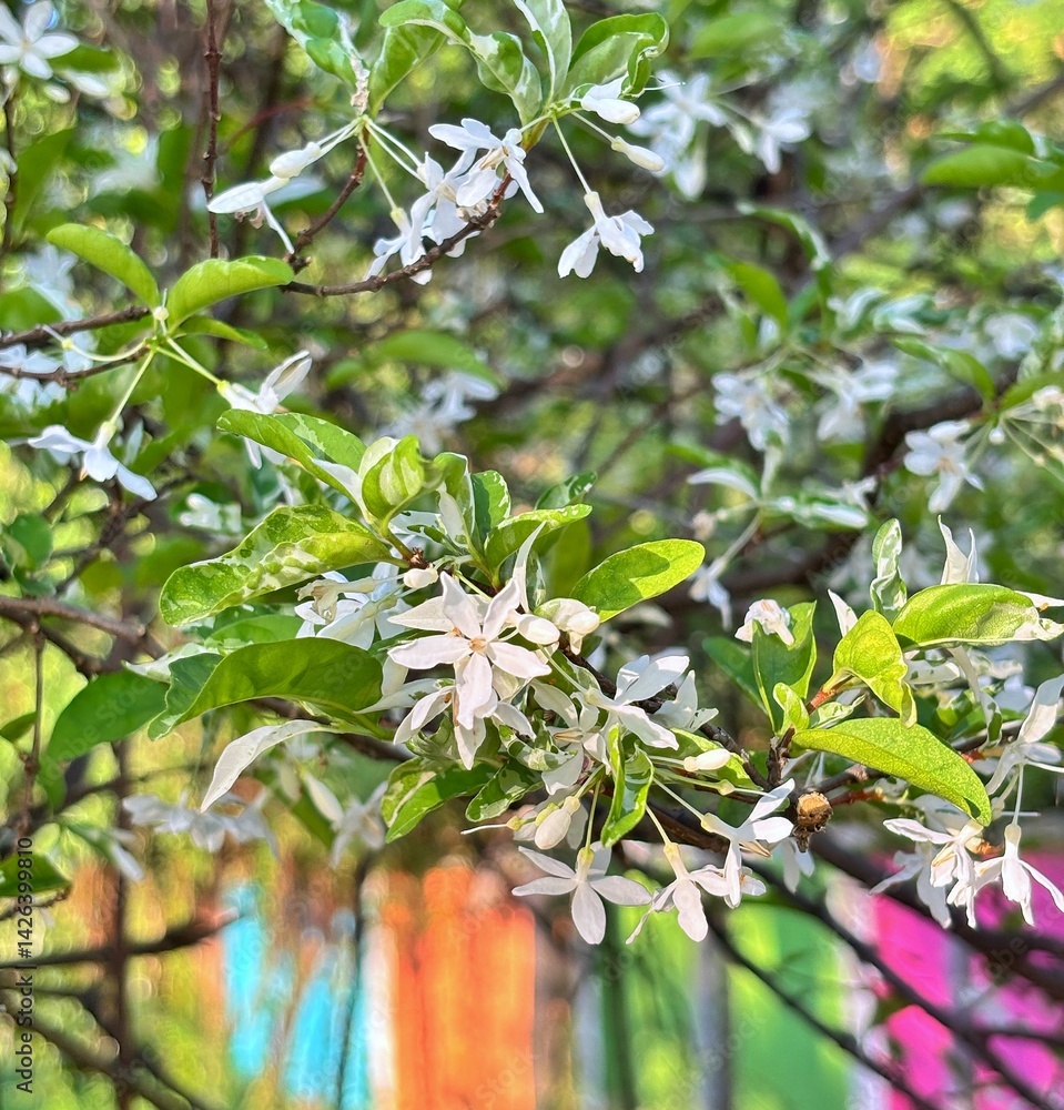 Water Jasmine Wrightia religiosa is a cluster of whith color flowers in the leaf axils near the branch tips.