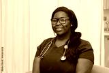Portrait of a happy African American female healthcare professional, portrait of a nurse with stethoscope