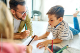 child family mother father happy daughter son education drawing learning creativity girl love together boy fun school student teaching development
