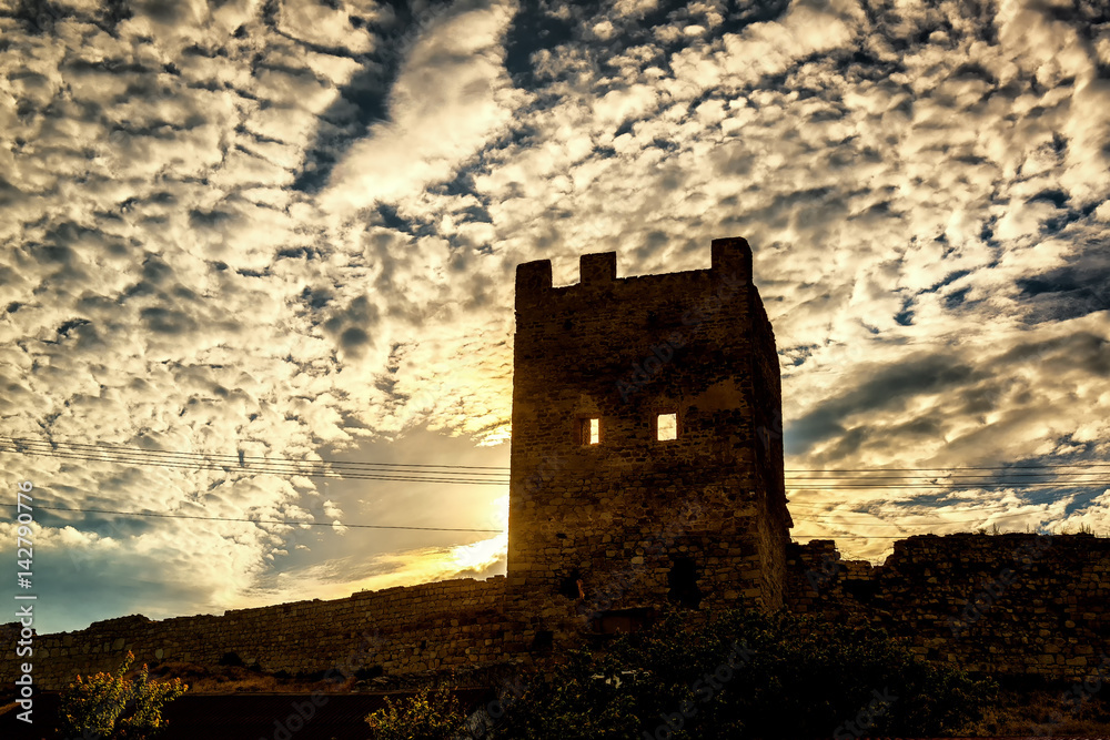 Genoese fortress in Feodosia at sunset, Crimea