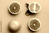 fresh Fruit grapefruit with Juicy grapefruit slices on colored background. Top view. Copy Space. creative summer concept. Half of citrus in minimal flat lay with copy space