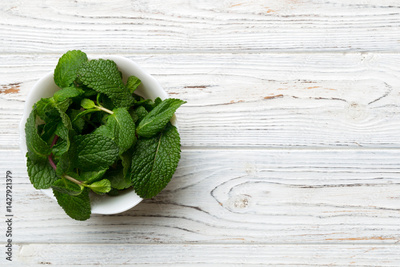 Mint leaf. Fresh mint on Colored background. Mint leaves isolated Top view with copy space