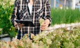 man hands gardening lettuce in farm .