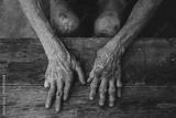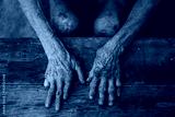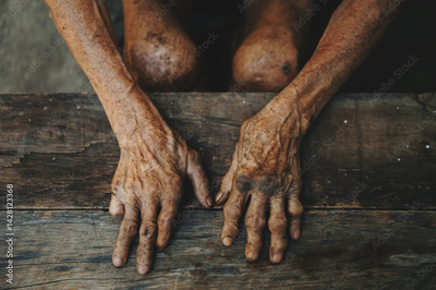 Close up of male wrinkled hands, old man is wearing skin disease and anxiety Copy space.