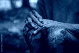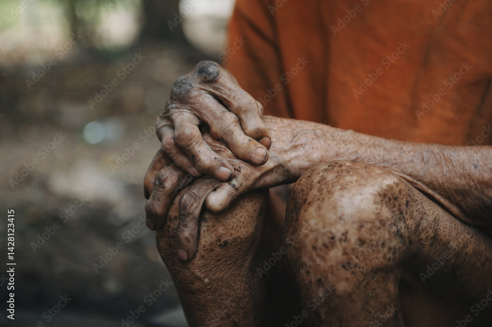 Close up of male wrinkled hands, old man is wearing skin disease and anxiety Copy space.
