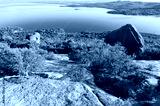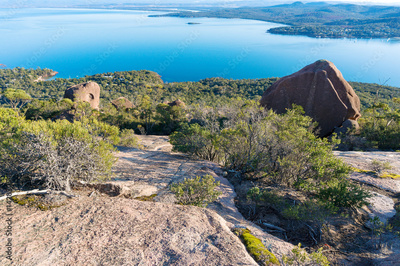 View on steep mountain slope and beautiful lagoon underneath