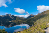 Mountain landscape with lake and hiking path