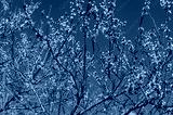 Bright pink sakura, sherry blossoms with blue sky on the background