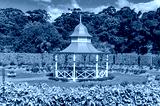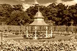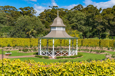 White pavilion in spring garden