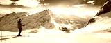 Man skiing on the prepared slope with fresh new powder snow in Tyrolian Alps, Zillertal, Austria