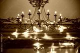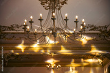 Luxury, expensive chandelier hanging under ceiling