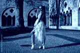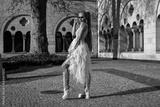 Elegant Fashion Model in Flowing Beige Dress Posing in the City in Summer Sunlight. Urban Fashion.