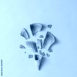 Shattered ice cream cone on pastel blue background. minimal food concept. Flat lay.