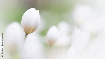 Close up shot of Bloodroot flowers with shallow depth of field with copy space
