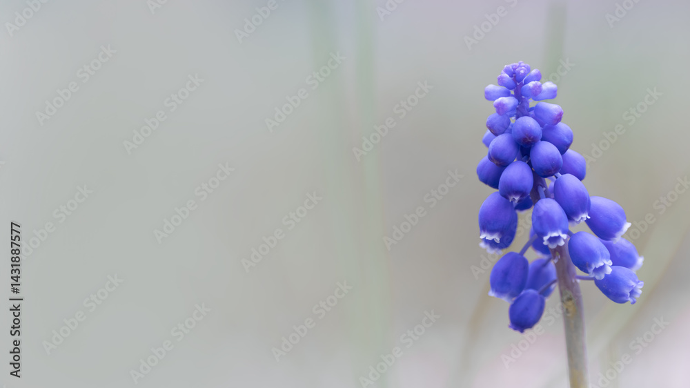 Detail of blue grape hyacinth flower with blur background with copy.space.