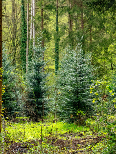 Wiederaufforstung im Mischwald im Frühjahr