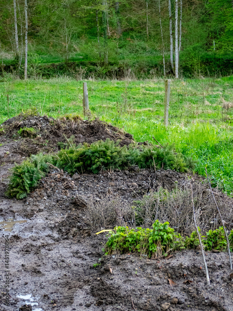 Wiederaufforstung im Mischwald im Frühjahr