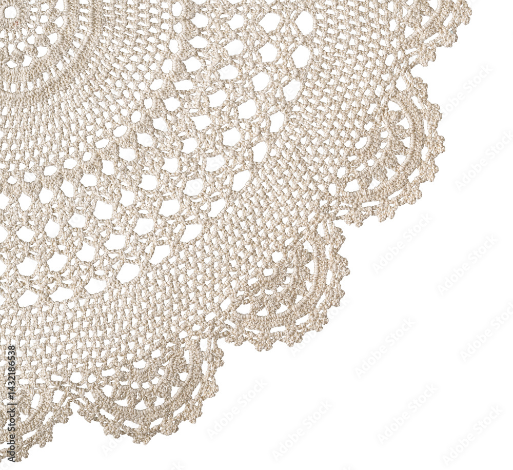 Round crochet beige doily isolated cutout on transparent