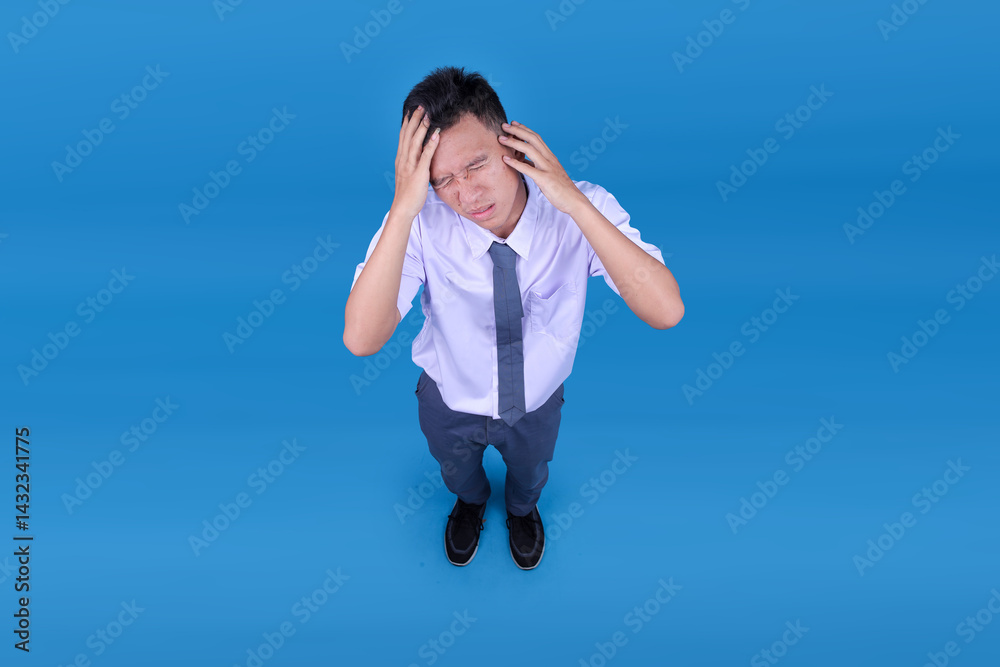 Worrying Asian Male High School Student Holding Head Suffer from Migraine