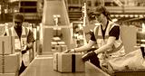 Diverse Workers in Safety Vests Loading Parcels Onto a Conveyor in a Modern Sorting Center Facility. People Working Together as a Team in Logistics and Postal Service Operations