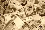 Big amount of money bills of different currencies and countries. Assortment background of international cash in big pile close up