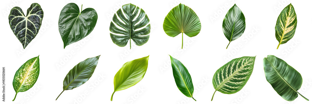 Diverse Collection of Green Leaves with Unique Textures and Patterns Isolated on White Background. Large Multiple Plant and Nature Collection Set Isolated on Transparent Background