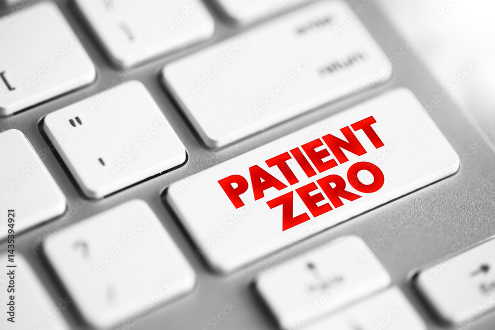 Patient Zero is the first documented patient in a disease epidemic within a population, text concept button on keyboard