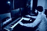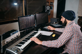 Audio engineer work with musical keyboard