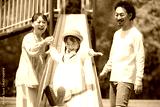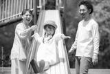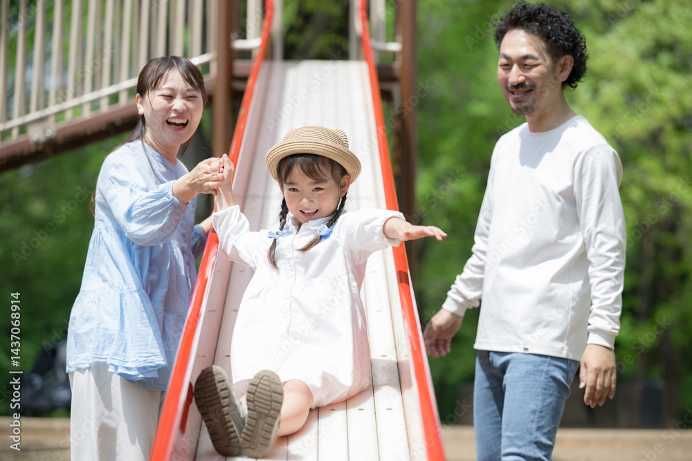公園の滑り台で遊ぶ親子 笑顔の子ども