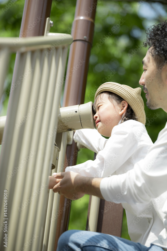 子どもの好奇心や冒険心のイメージ 望遠鏡をのぞき込む子どもの能力を育てる