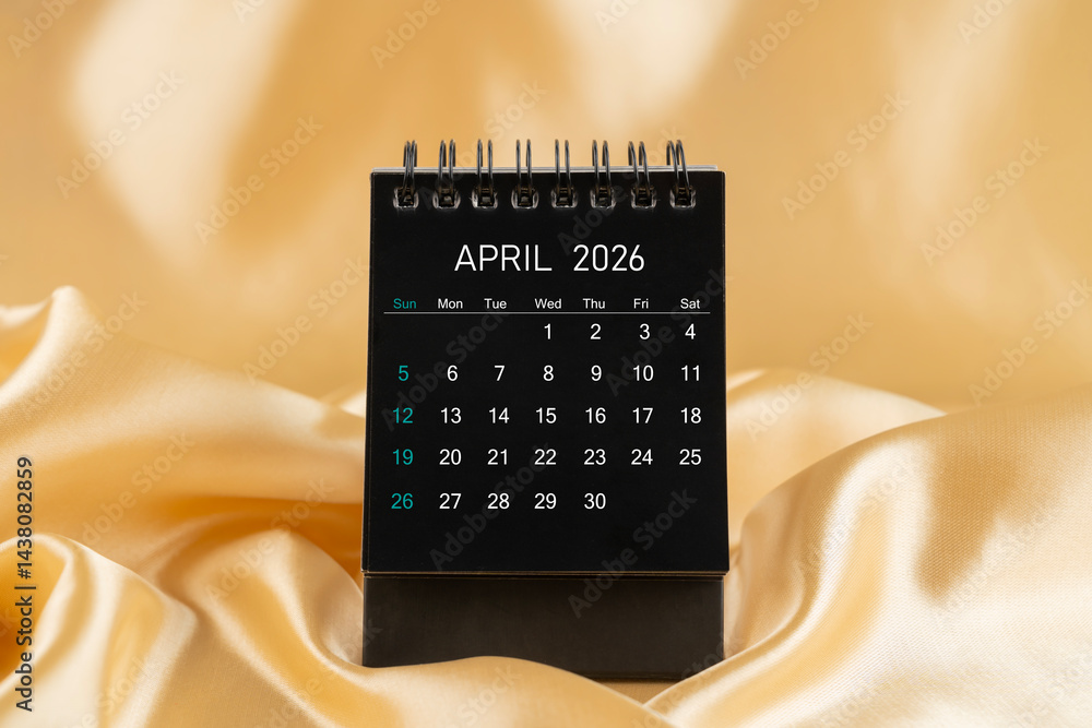 April Desk mini desk calendar black color for 2026 year on gold color silk.