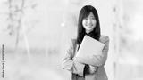 ノートパソコンを持つ笑顔の女性・ビジネスウーマン