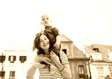 Family of Tourists in Cesky Krumlov, Czech Republic, Europe