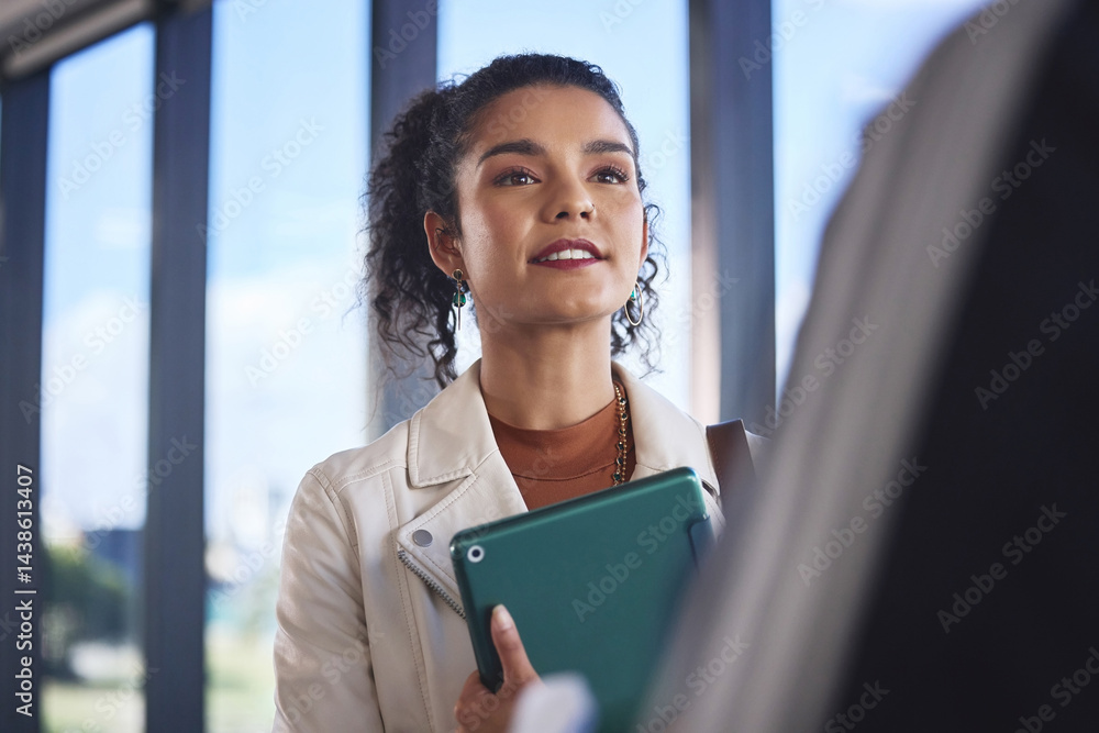 Woman, internship and student in fashion office, intern and learning opportunity for designer program. Design, creative industry and employee in job, trainee experience and discussion meeting
