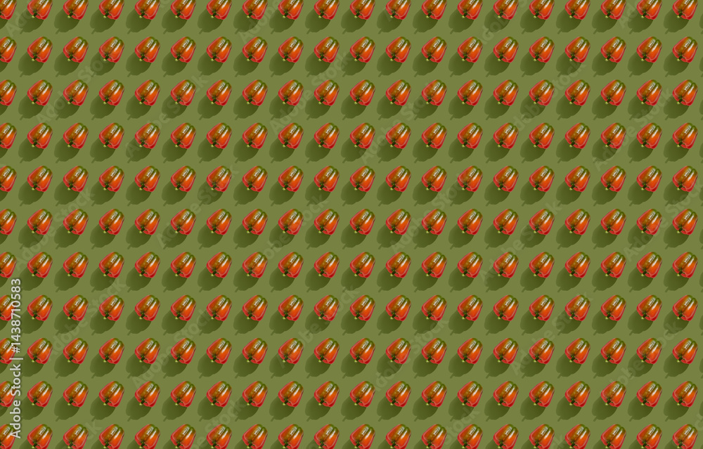 Pattern of red peppers on green pastel background