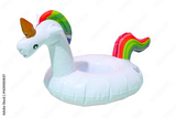 Colorful unicorn float ready for summertime enjoyment in pools, isolated on white, PNG