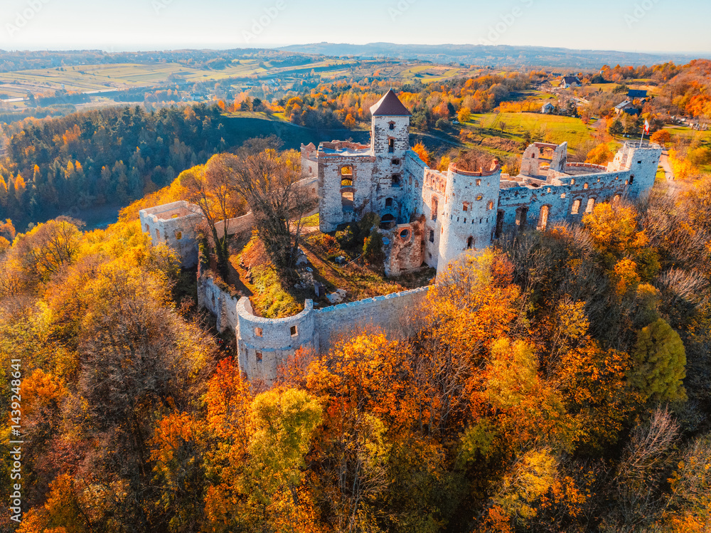 Ruins of medieval Tenczyn castle in Rudno near Krakow in Poland.